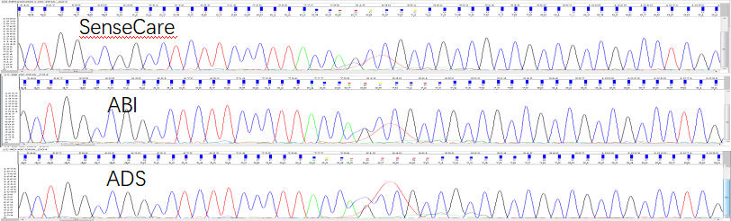 結果顯示,SenseCare BigDye試劑測序結果與ABI和(hé)ADS結果完全一致;